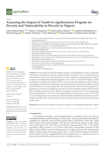 Assessing the impact of Youth-in-Agribusiness Program on poverty and vulnerability to poverty in Nigeria