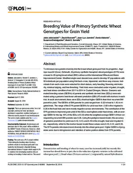 Jafarzadeh, J. et al., 'Breeding value of primary synthetic wheat genotypes for grain yield', PLOS ONE, vol. 11(9), p. e0162860, Public Library of Science (PLoS), 2016
