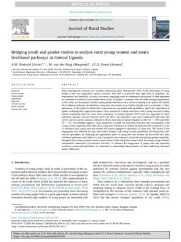 Bridging youth and gender studies to analyse rural young women and men's livelihood pathways in Central Uganda