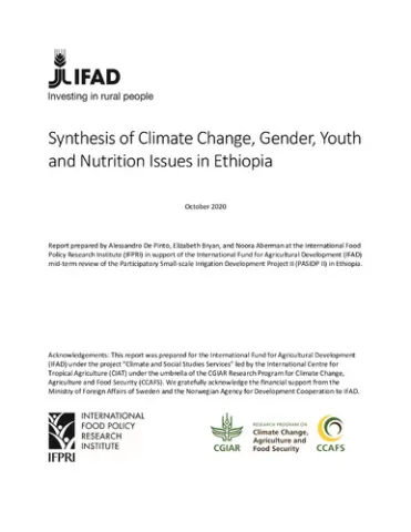 De Pinto A, Bryan E, Aberman NL. 2020. Climate change, gender, youth and nutrition situation analysis - Ethiopia. IFAD Report. CGIAR Research Program on Climate Change, Agriculture and Food Security (CCAFS).