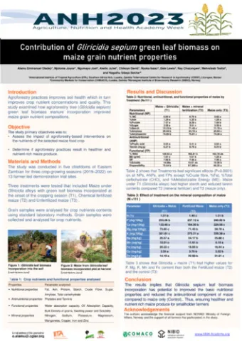 Alamu, E.O., Njoloma, J., Ngumayo, J., Akello, J., Chikoye, D., Nyoka, I., ... & Nagothu, U.S. (2023). Contribution of Gliricidia sepium green leaf biomass on maize grain nutrient properties. Ibadan, Nigeria: IITA, (1 p.).