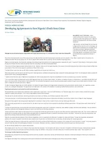 Breadcrumb Home Publications Developing agripreneurs to save Nigeria's youth from crime Regions Western Africa Sub-Saharan Africa Africa World From Technical Centre for Agricultural and Rural Cooperation (CTA) Publication year 2019 Publication authors Bafana, Busani Publication Type Magazine or Press item Full Citation Bafana, Busani. 2019. Developing agripreneurs to save Nigeria’s youth from crime. IPS News Open original