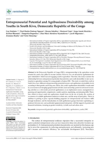 Entrepreneurial potential and agribusiness desirability among youths in South Kivu, Democratic Republic of the Congo