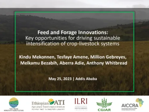 Mekonnen K, Amene T, Gebreyes M, Bezabih M, Adie A, Whitbread A. 2023. Feed and Forage Innovations: Key opportunities for driving sustainable intensification of crop-livestock systems. Nairobi, Kenya. International Livestock Research Institute (ILRI).