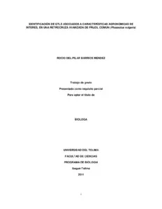 Barrios Mendez, Rocio del Pilar. 2011. Identificación de QTLS asociados a características agronómicas de interés, en una retrocruza avanzada de frijol común (Phaseolus vulgaris). Tesis (Biólogo). Universidad del Tolima, Facultad de Ciencias Básicas, Programa de Biología, Ibagué, CO. 111 p..