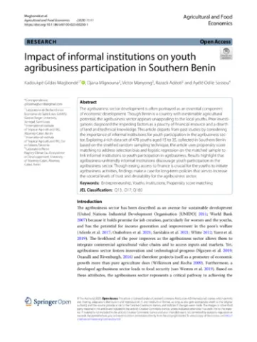Impact of informal institutions on youth agribusiness participation in southern Benin