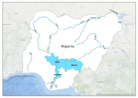 The data contains maximum flood inundation extent for Nigeria using MOD09A1 8-day 500m surface reflectance time-series imagery