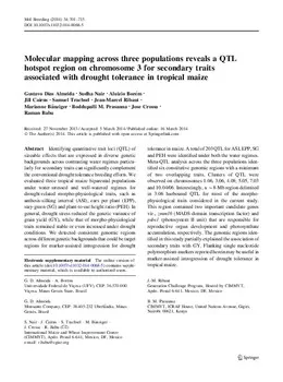 De Almeida, G. D., Nair, S. K., Borém, A., Cairns, J. E., Trachsel, S., Ribaut, J., Bänziger, M., Prasanna, B. M., Crossa, J., & Babu, R. (2014). Molecular mapping across three populations reveals a QTL hotspot region on chromosome 3 for secondary traits associated with drought tolerance in tropical maize. *Molecular Breeding*, 34(2), 701-715. https://doi.org/10.1007/s11032-014-0068-5