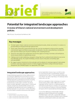 O’Connor, A., Djoudi, H., Zida, M. 2021. Potential for integrated landscape approaches: A review of Ghana’s national environment and development policies. CIFOR Infobrief No. 320. Bogor, Indonesia. Center for International Forestry Research (CIFOR). https://doi.org/10.17528/cifor/007953