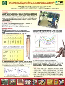 Sánchez, Teresa; Dufour, Dominique L.; Ceballos, Hernán; Mestres, Christian; Max, Reynes. 2009. Preferencia de uso de la yuca en base a las correlaciones entre composición de la raíz, propiedades fisicoquímicas y funcionales del almidón de yuca [poster] [en línea]. Centro Internacional de Agricultura Tropical (CIAT), Cali, CO. 1 p.