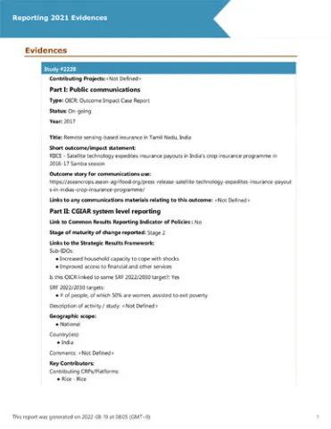 CGIAR Research Program on Rice. 2017. Remote sensing-based insurance in Tamil Nadu, India. Reported in Rice Annual Report 2017. Outcome Impact Case Report.
