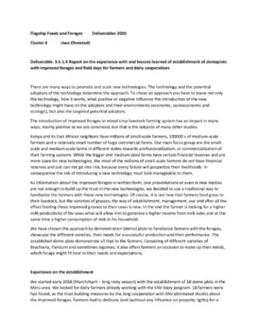 Ohmstedt, U. (2020) Report on the experience with and lessons learned of establishment of demoplots with improved forages and field days for farmers and dairy cooperatives. Nairobi (Kenya): Alliance of Bioversity and CIAT. 5 p.