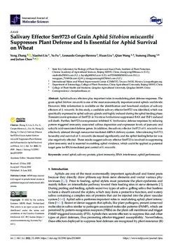 Salivary effector Sm9723 of grain aphid sitobion miscanthi suppresses plant defense and is essential for aphid survival on wheat