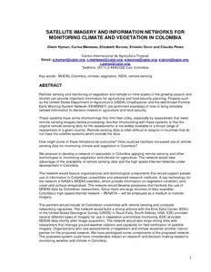 Hyman, Glenn; Meneses, Carlos; Barona A., Elizabeth; Girón, Ernesto; Perea, Claudia Ximena. 2006. Satellite imagery and information networks for monitoring climate and vegetation in Colombia. Centro Internacional de Agricultura Tropical (CIAT), Cali, CO. 7 p.