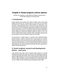 Sweet sorghum can be grown under dryland conditions with annual rainfall ranging from 550-750 mm. The best areas to produce this crop are Central and South India, subtropical areas of Uttar Pradesh and Uttaranchal. It can be grown on well-drained soils such as silt loam or sandy silt clay loam soils with a depth of 0.75 m. Atmospheric temperatures suitable for sweet sorghum growth vary between 15 and 37°C. Sorghum being a C4 species is adapted to a wide range of environments with latitudes ranging from 40oN to 40oS of the equator. Sorghum in general has relatively a deep root system (>1.5 m), and has the unique feature of being ‘dormant’ under unfavorable conditions and resume growth once environmental conditions are favorable