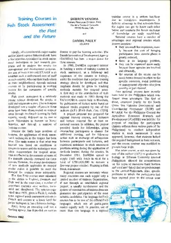 Ideally, all countries with major marine and/or inland capture fisheries should have a few scientists specialized in stock assessment techniques to lead research programs and to analyze the results for management and development purposes. An aim of both FAO and ICLARM is to establish such a well-trained core of staff in each country, who can then teach others in their neighborhood, through national courses or by participating in working parties for the assessment of specific stocks