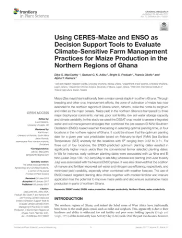 Using CERES-maize and ENSO as decision support tools to evaluate climate-sensitive farm management practices for maize production in the northern regions of Ghana
