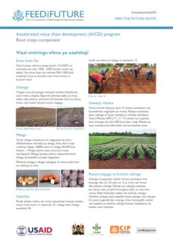 CIP. 2018. Viazi mviringo elimu ya uzalishaji: Feed the Future Kenya Accelerated Value Chain Development Program—Root crops component. AVCD Extension Brief 1. Lima, Peru: CIP.