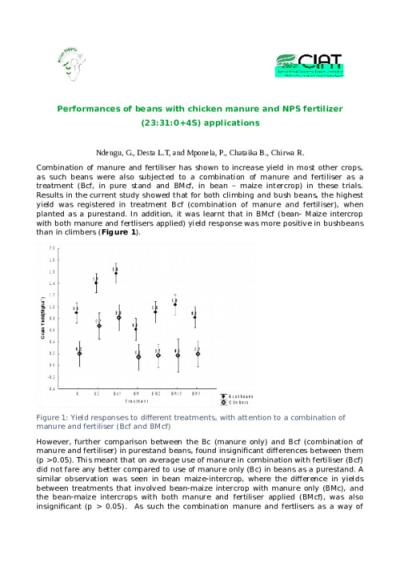Brief Performances of different bean genotypes with chicken manure and NPS fertilizer (23:31:0+4S) applications