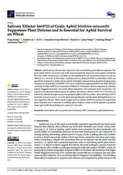Scientific Publication Salivary effector Sm9723 of grain aphid sitobion miscanthi suppresses plant defense and is essential for aphid survival on wheat