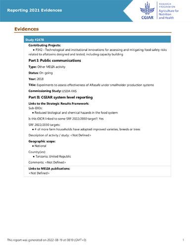 Report / Case study Experiments to assess effectiveness of Aflasafe under smallholder production systems