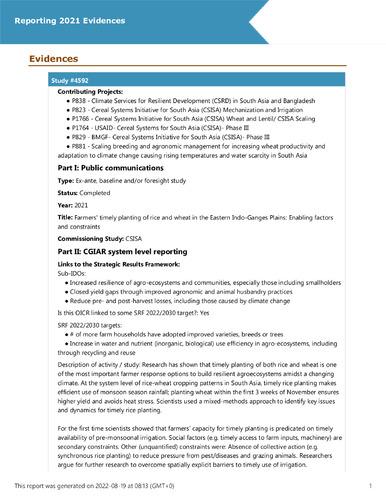 Report / Case study Farmers' timely planting of rice and wheat in the Eastern Indo-Ganges Plains: Enabling factors and constraints