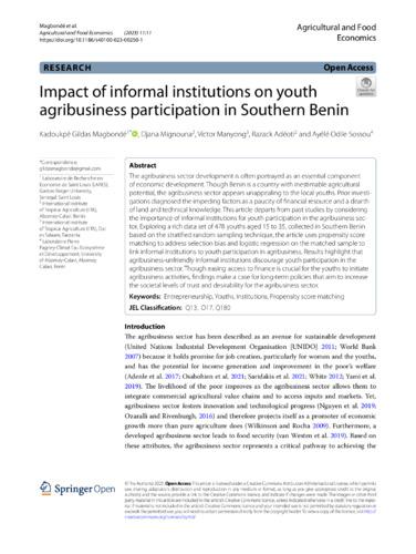Scientific Publication Impact of informal institutions on youth agribusiness participation in southern Benin
