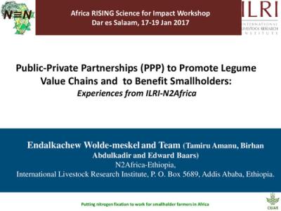 Poster / Presentation Public-Private Partnerships (PPP) to promote legume value chains and to benefit smallholders: Experiences from ILRI-N2Africa