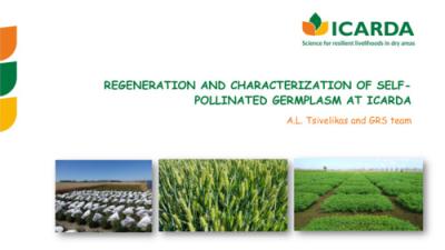 Poster / Presentation Regeneration and characterization of self-pollinated crops at ICARDA – Best practices and considerations
