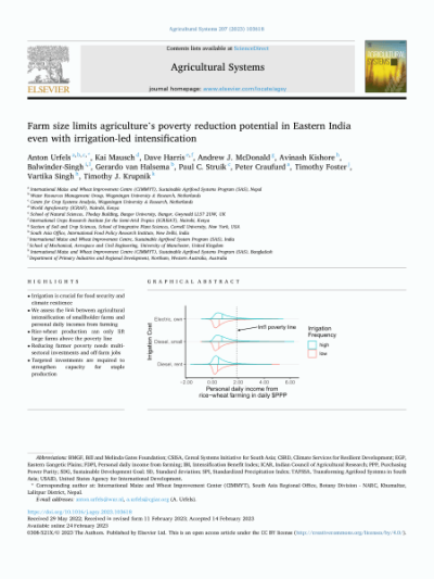Scientific Publication Farm size limits agriculture's poverty reduction potential in Eastern India even with irrigation-led intensification