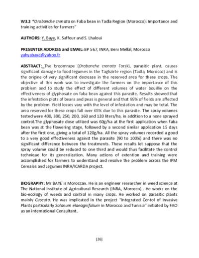 Scientific Publication Orobanche crenata on Faba bean in Tadla Region (Morocco): Importance and training activities for farmers